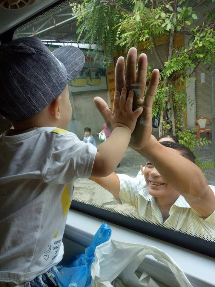 Đính kèm dòng tâm sự ngắn là hình ảnh cậu cháu trai còn nhỏ giơ bàn tay bé xíu chạm vào bàn tay to lớn, chai sạn vì mưa nắng của ông ngoại qua cửa kính xe khách khiến nhiều người nhói lòng. Đứng bên ngoài, ông bà ngoại với khuôn mặt đầy những nếp nhăn, nở nụ cười hồn hậu vẫy tay tạm biệt cháu.