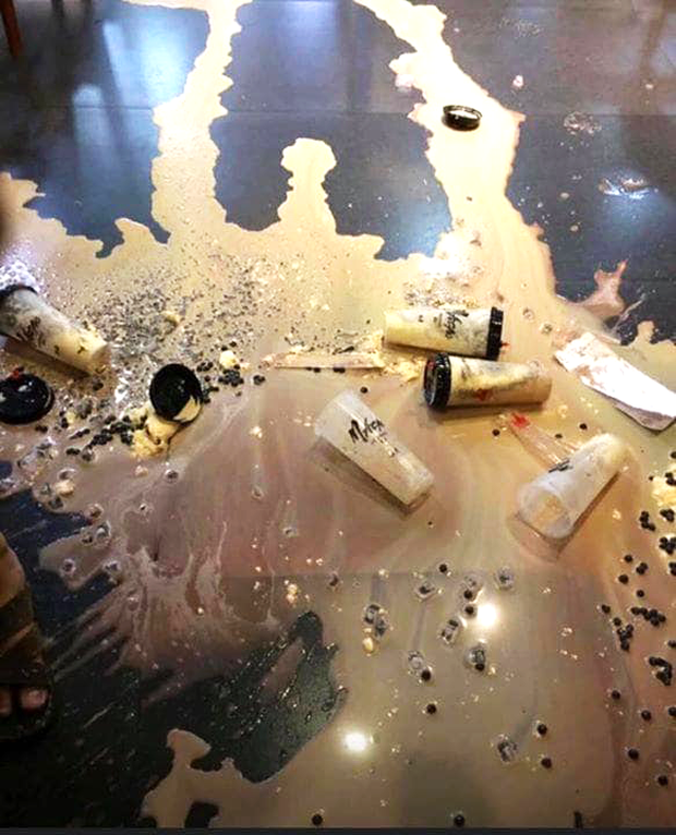 Hình ảnh "toang" sạch sẽ này đang được cư dân mạng truyền tay chóng mặt. Nhìn 5 cốc trà sữa size L lại còn full toping đổ lênh láng dưới đấy thế kia, đến người ngoài còn tiếc đứt ruột nói gì đến chủ nhân.
