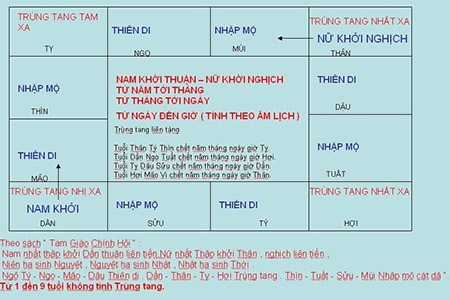 Bảng tính trùng tang trong dân gian. |