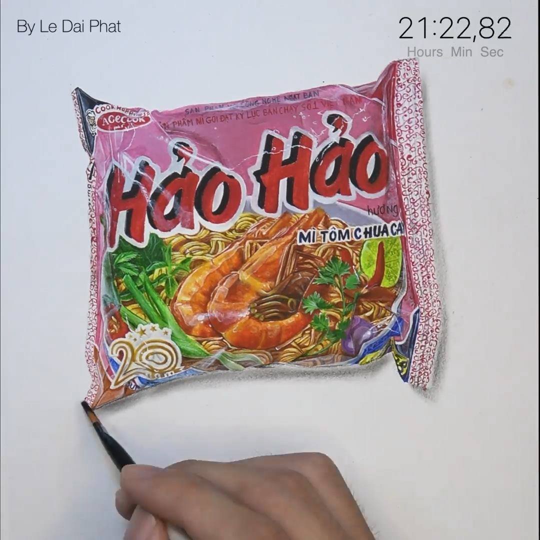 Như mới đây, trong một group lớn trên MXH, một bài đăng đã khiến dân mạng không khỏi xôn xao. Cụ thể, đây là những bức ảnh chụp lại bức vẽ gói mì tôm Hảo Hảo. Nhưng nếu chỉ nhìn sơ qua, bạn chắc chắn không thể phân biệt được đó là ảnh vẽ hay ảnh chụp.