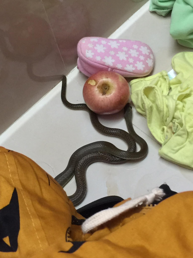 Nhà có cô em gái lên chơi. Ở tầm vài hôm rồi nó đánh hơi thế nào vào tận phòng. Em gái đang cho cháu ti mẹ thì thấy nó trước mặt. Có khăn em gái mình hay lau sữa mà bé ngủ nên chưa kịp giặt cất thì đã thấy nó quấn vào đó rồi. Đọc qua nhiều vụ rồi mà em nghĩ chưa tin là rắn thích sữa mẹ thật. Giờ thì tin thật rồi.