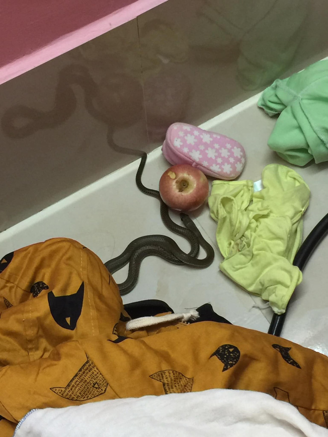 Theo hình ảnh đính kèm con rắn có màu tối, bị đứt mất phần đuôi đang nằm cuộn khoanh gần chân tường, xung quanh có đồ đạc của trẻ nhỏ. Câu chuyện được mọi người chia sẻ lại cũng như một lời nhắc nhở các mẹ bỉm sữa nên cẩn thận và chú ý đến các em nhỏ nhiều hơn, đặc biệt là những gia đình có cây cối um tùm xung quanh hoặc khu vực ẩm ướt có thể trở thành nơi trú ngụ cho rắn rết.
