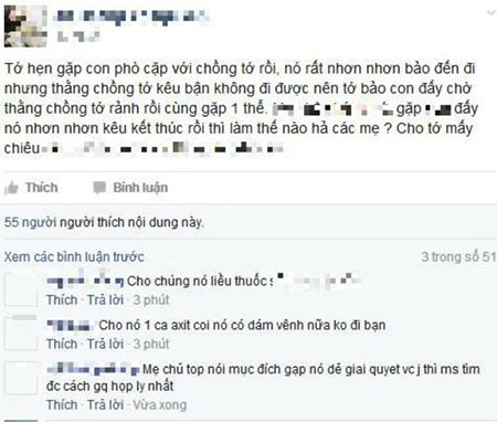 26/10/2015 22:33Hoảng hồn với trào lưu "các mẹ" lên mạng xã hội tố chồng ngoại tình, lập hội "diệt bồ"