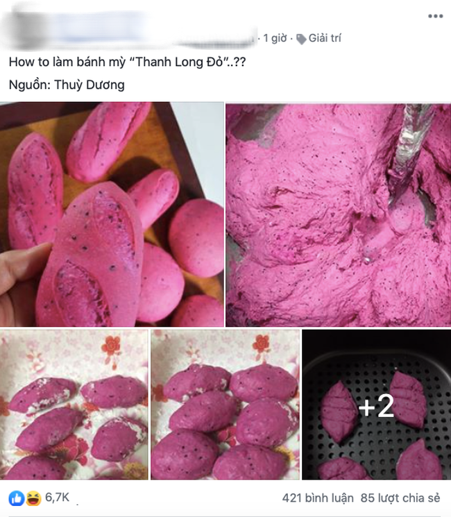 - Trời ơi, bánh mì thanh long đỏ đây á? Nếu không nói mình lại tưởng bánh chuột đen không à! Không phải ai cũng nấu ăn được đâu, kể cả có học trên mạng nhé.