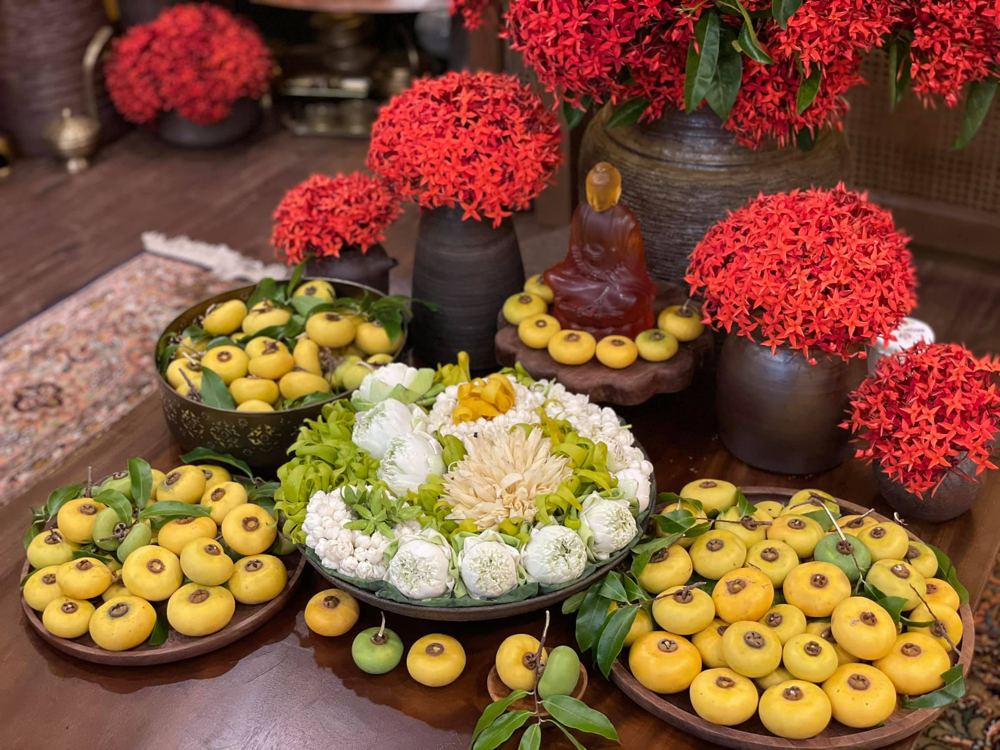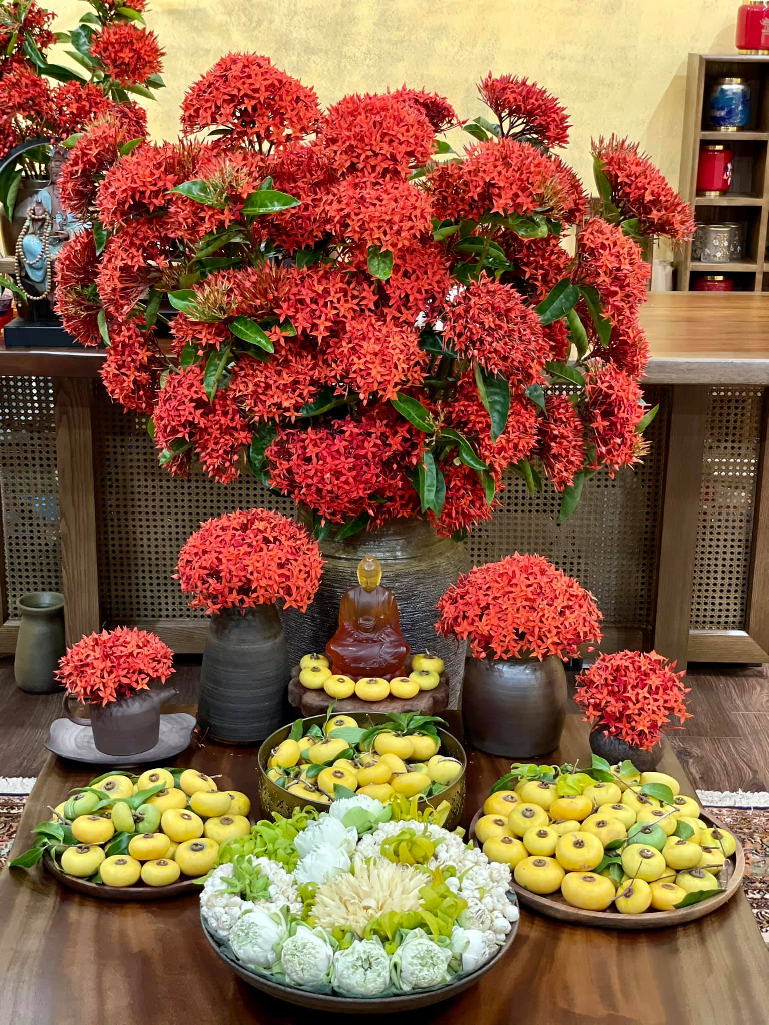 Bộ bát đĩa hình bông hoa được nhiều chị em lựa chọn để bày mâm cúng.