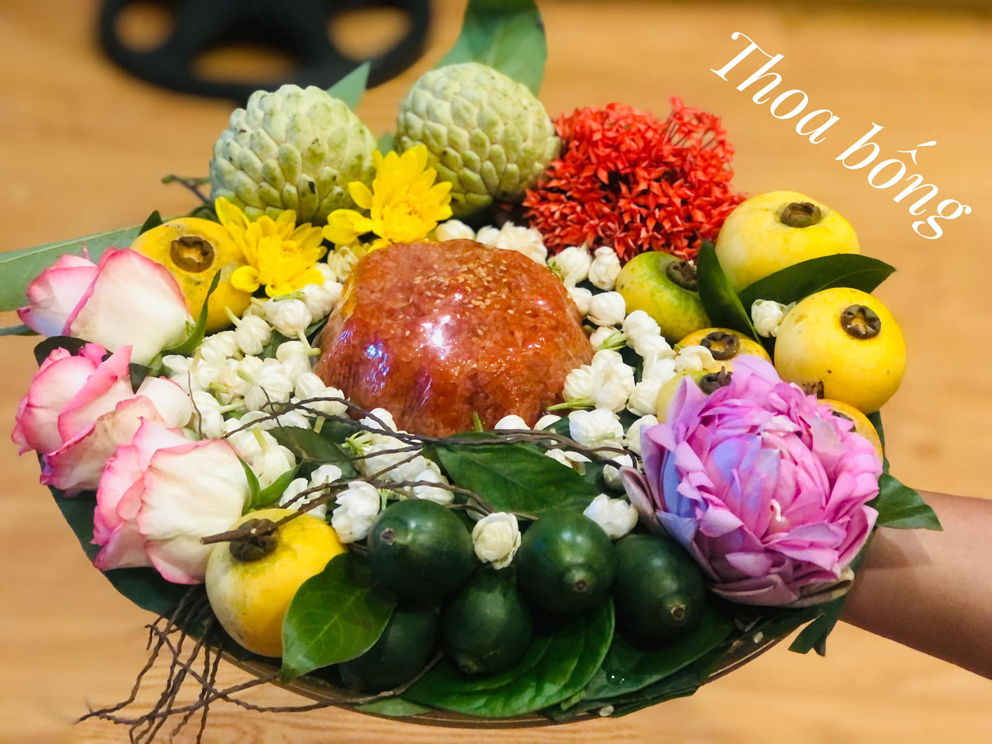 Mâm cúng đơn giản nhưng thể hiện sự khéo léo của người thực hiện.