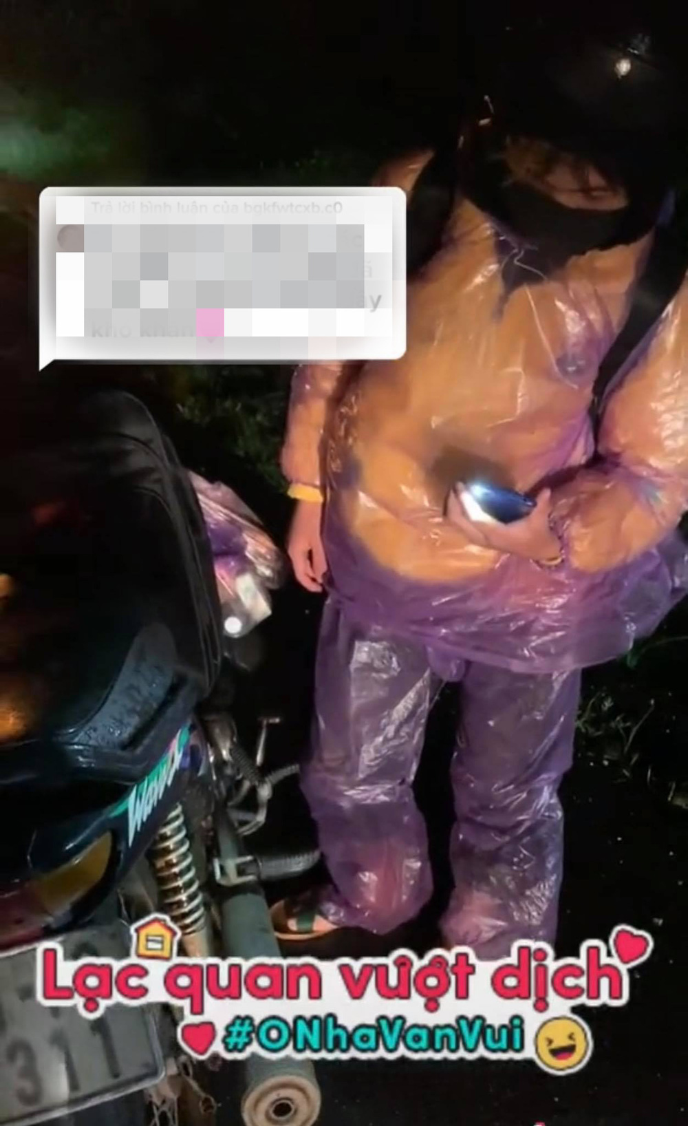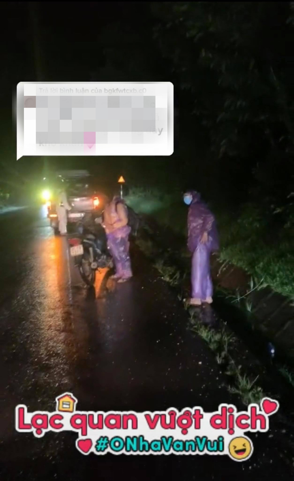 Theo đó, trong cơn mưa lúc đêm muộn, nhóm người đã phát hiện ra chiếc xe máy cũ dựng bên đường. Nhìn kĩ thì giật mình khi thấy có 2 người mặc áo mưa nằm ngủ co ro ngay bên cạnh. Có lẽ họ đã đi một đoạn đường khá dài dẫn đến mệt mỏi nên ngủ thiếp đi.