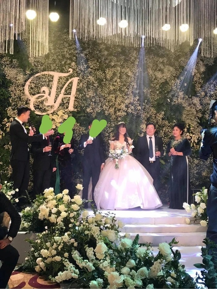 Đám cưới của V.A và T. diễn ra vô cùng long trọng tại một nhà khách sạn có tiếng ở Hà Nội, xuất hiện cả siêu xe giá trị hơn 80 tỉ đồng. V.A nói rằng đây quà hồi môn bố mẹ tặng nhưng thực tế chiếc xe được cô thuê với giá 37 triệu đồng/ngày.