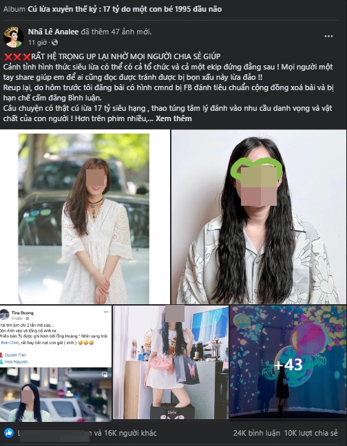 Cụ thể, tối 12/9, chủ tài khoản tick xanh tên Nhã Lê Analee đã đăng tải một bài đăng trên mạng xã hội tố một cô gái tên V.A. (sinh năm 1995, tại Bắc Giang) lên kế hoạch lừa đảo tỉ mỉ hòng chiếm đoạt số tiền lên tới 17 tỉ đồng.