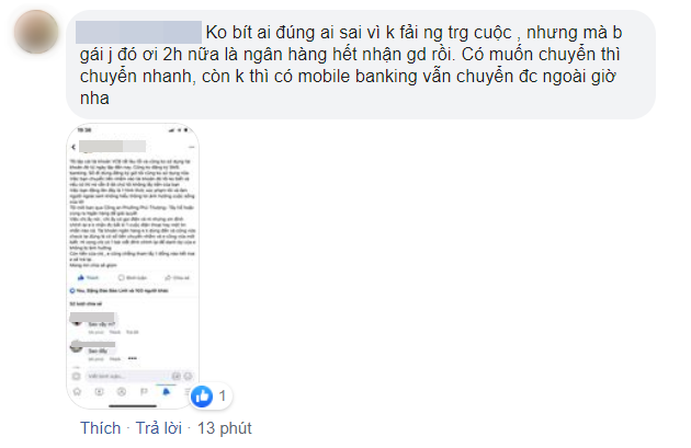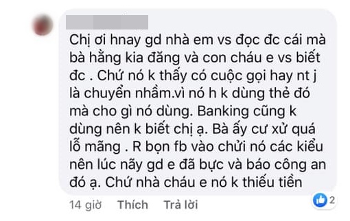 Ai cũng cho rằng cách đòi tiền này không hợp tình hợp lý, bởi đã có một số người tìm ra FB của nữ sinh trên và nhảy vào "đòi tiền hộ", thậm chí nói nặng lời rằng T. nhận được tiền "trên trời rơi xuống" nên tham lam giấu đi.