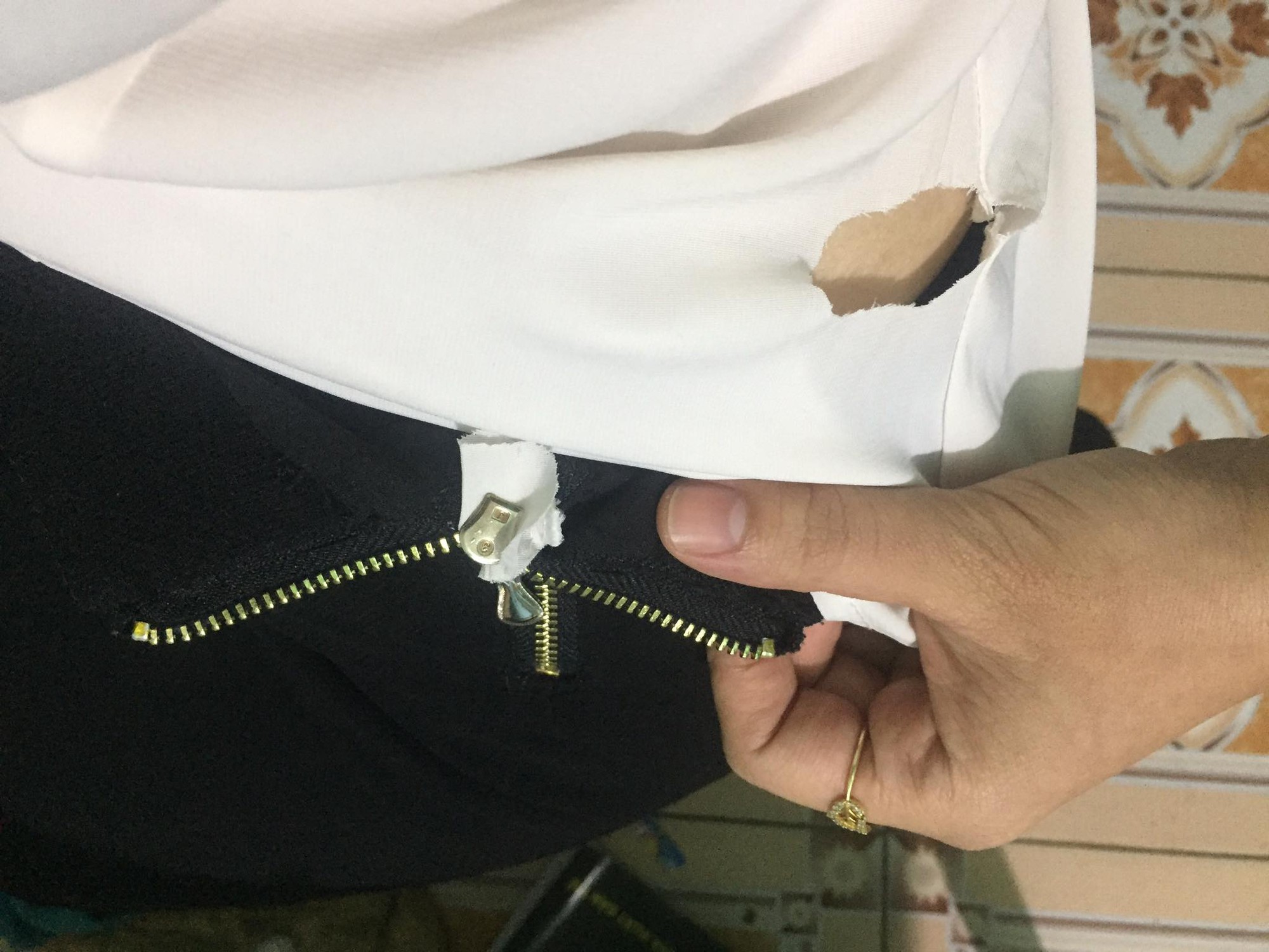 - Có sẵn kéo ở đó thì cậy cái khóa cho rộng ra là hết kẹt áo, xong bấm lại là xong, cùng lắm vỡ khóa đem đi thay được, chứ cắt cả chiếc áo thế phí của.