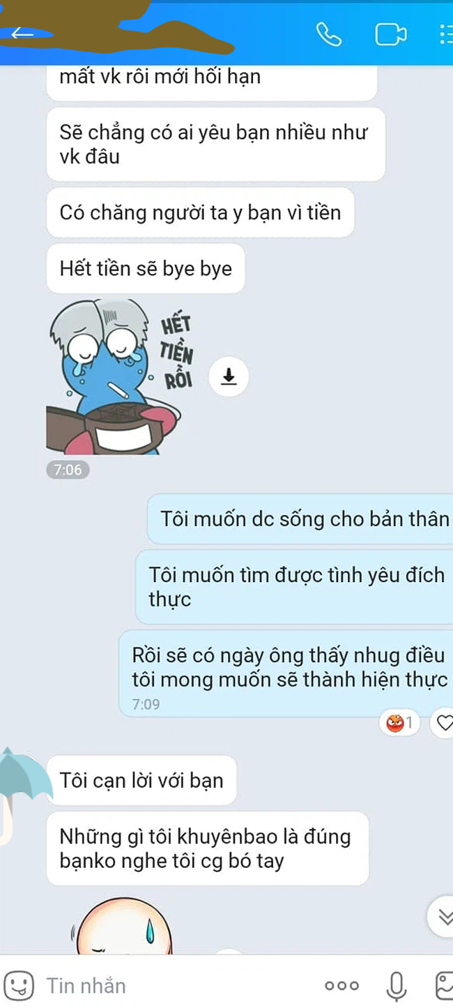 - Một người chồng như thế này không hiểu chị có điều gì để tiếc nuối? Ngay từ đầu anh ta đã lợi dụng chị, tham của nhà chị. Đừng sống mà bị coi thường như thế!