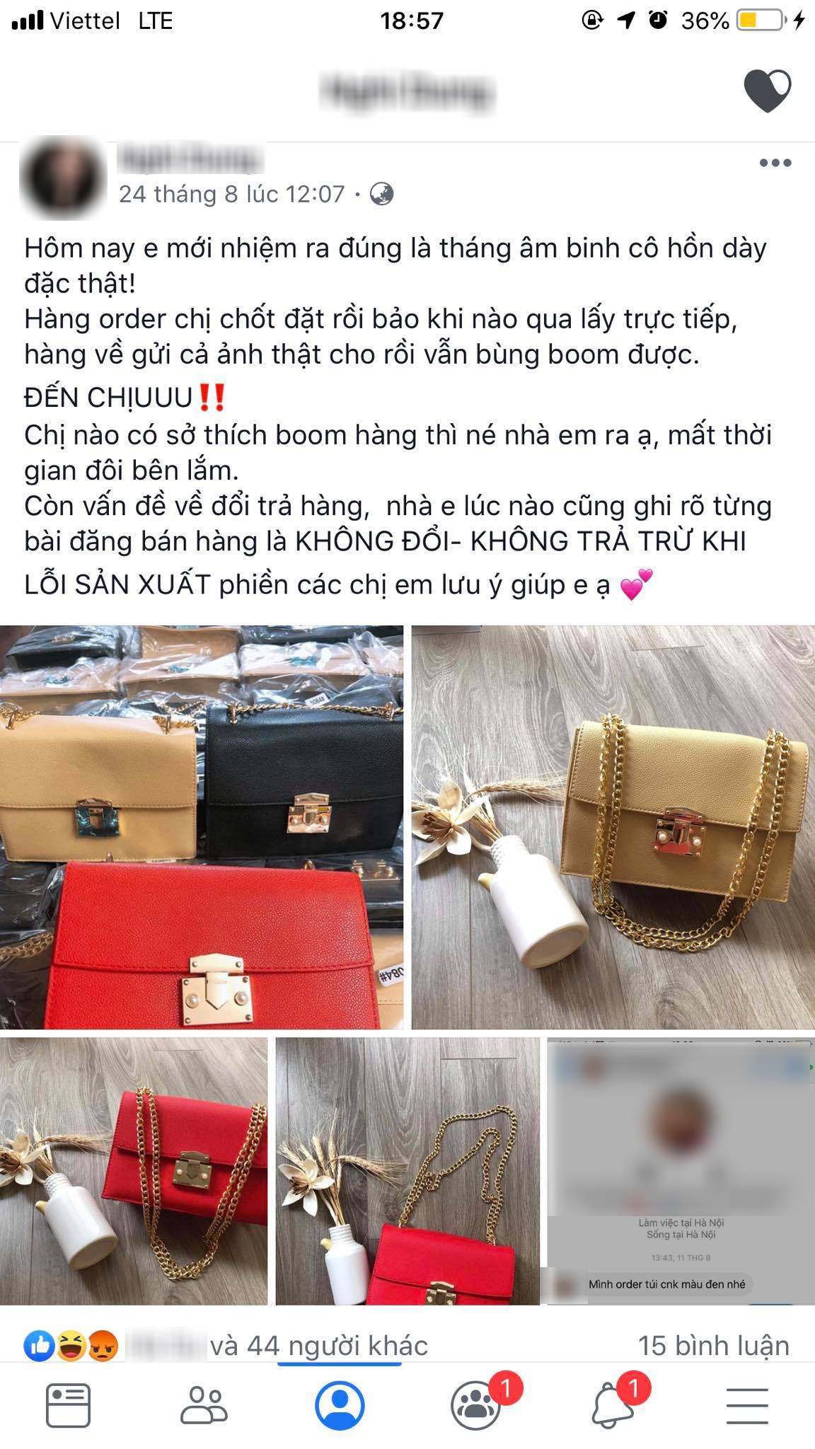 02/09/2019 21:00Khách đã 'bom' chiếc túi 129k còn mắng ngược cô chủ, rồi đe dọa và đặt điều không thương tiếc khiến dân tình 'sôi máu'