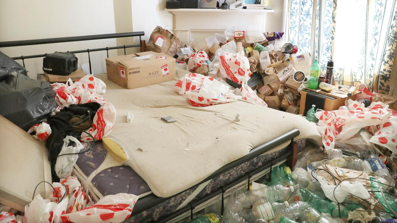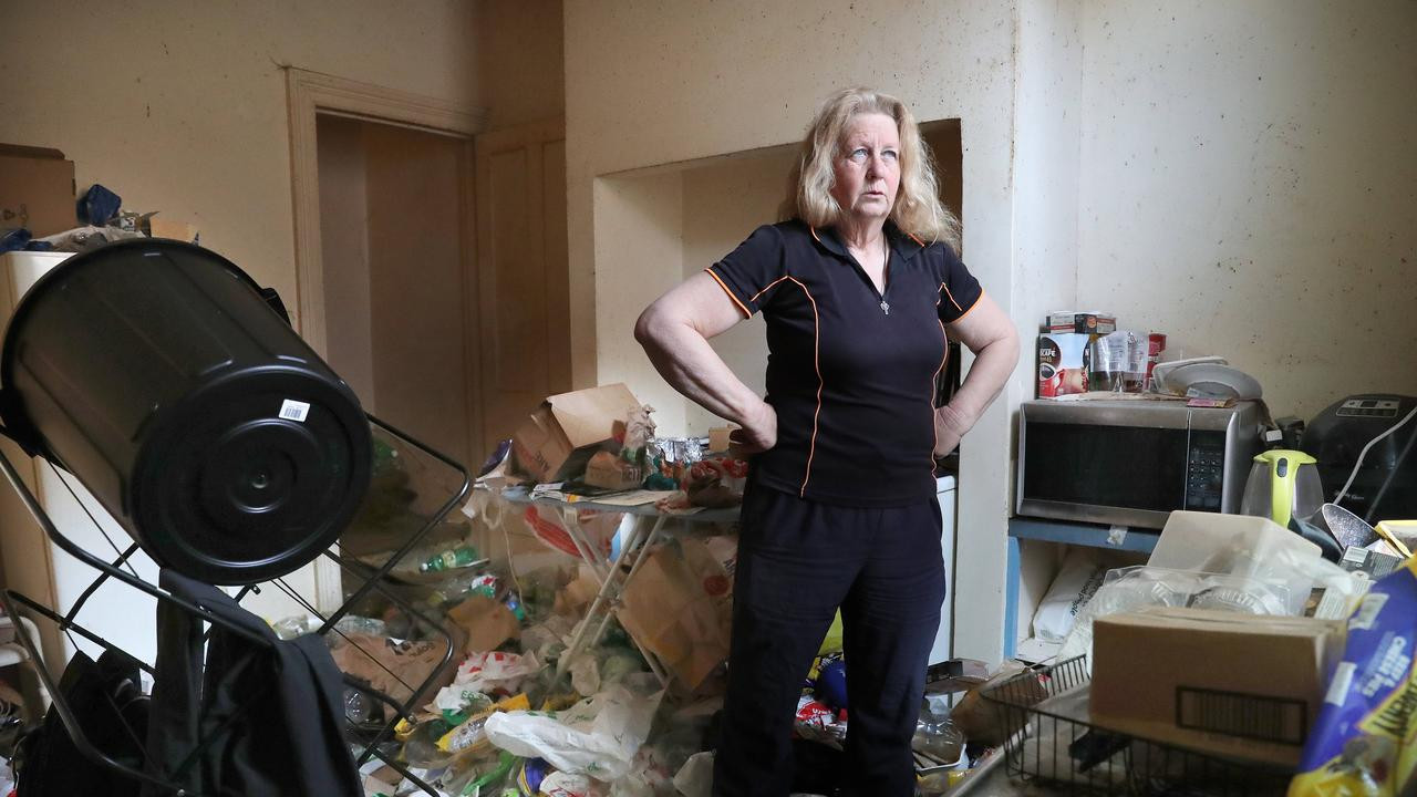 Đống rác ngập đến mắt cá chân của bà Kim. Mùi thức ăn ôi thiu, nấm mốc, bốc lên. Con mèo của khách thuê cũng phá hỏng đồ đạc, theo News.