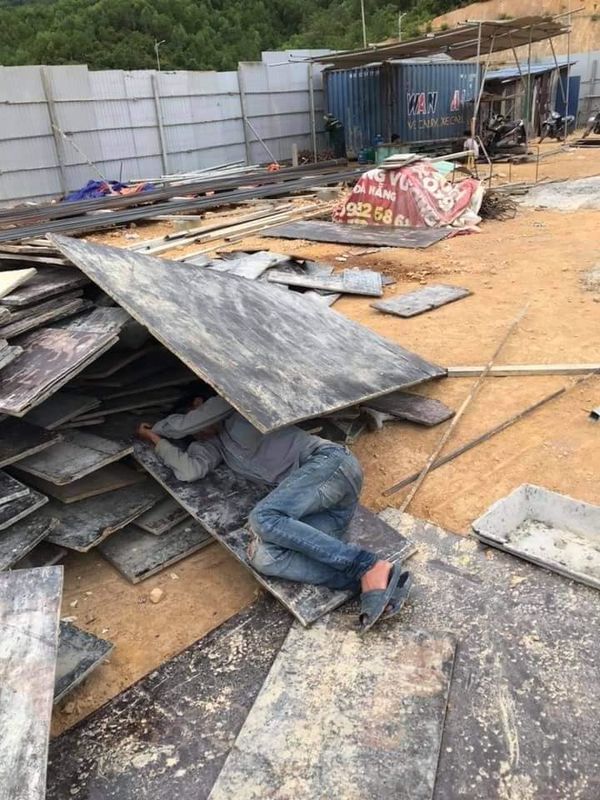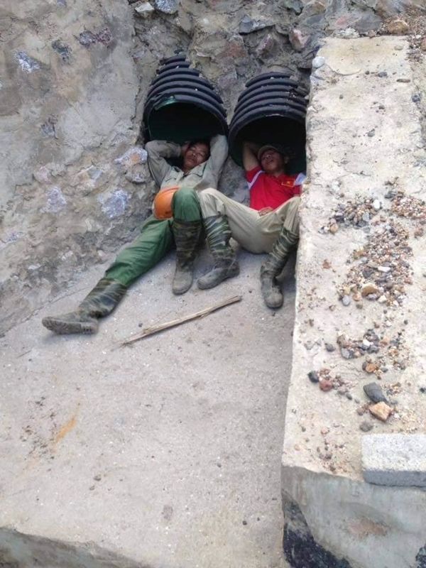 Nơi làm việc của họ vừa bẩn thỉu lại đầy rẫy nguy hiểm, nhưng họ vẫn cố gắng để kiếm tiền gửi về cho gia đình. Không chỉ vậy, sự tạm bợ còn ở ngay trong giấc ngủ trưa của họ. Không có chăn ấm đệm êm hay điều hòa mát rượu, chỗ ngủ của họ lại ở ngay trên chính công trường đó. Họ lấy các ống kim loại lớn làm phòng ngủ, sử dụng tấm bạt để làm chăn hay thậm chí có người nằm ngay trong đống đổ nát.