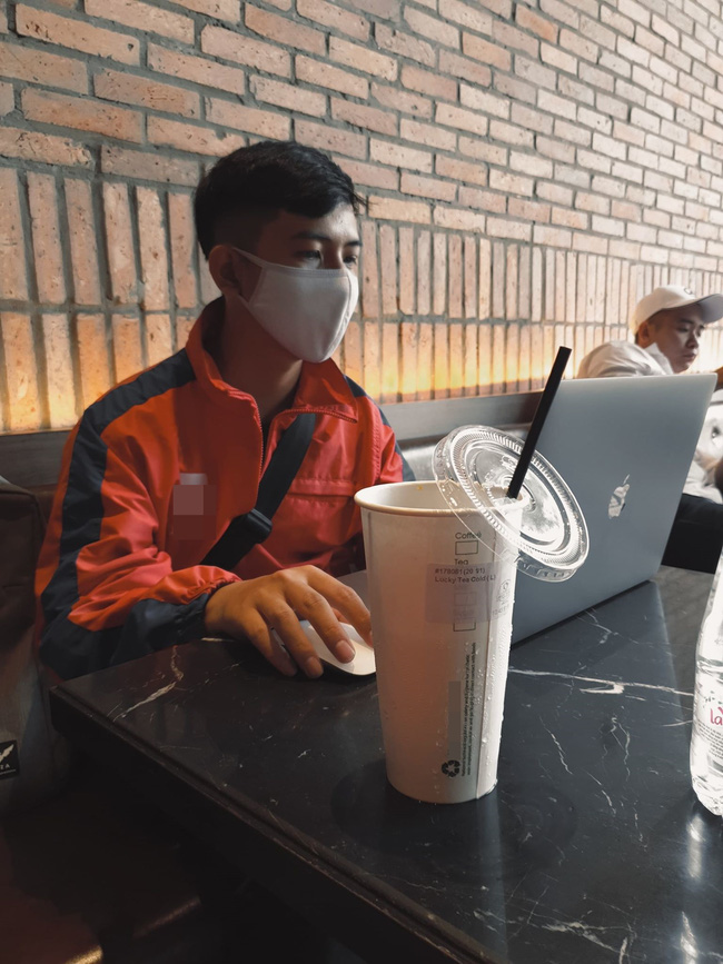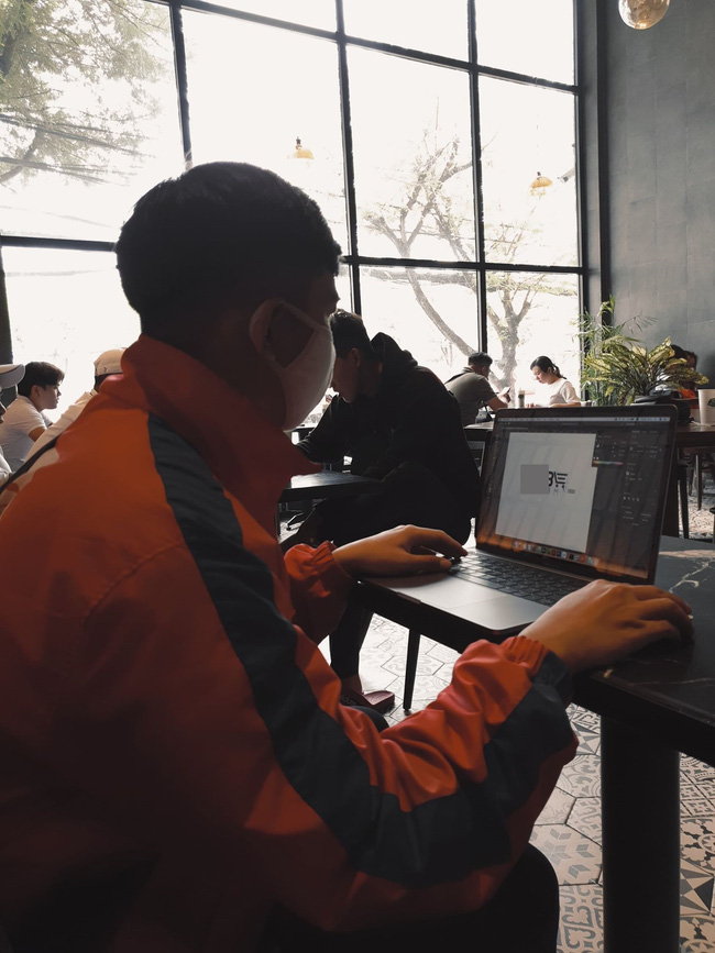 Theo đó, ngày hôm nay Vinh có ra quán cà phê ngồi làm việc. Khoảng 11h đang thiết kế logo cho khách mà bị bí ý tưởng, lại đói bụng nên Vinh tạm dừng, đặt cơm qua ứng dụng.