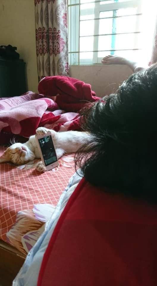 Dân tình hẳn đã quá quen với cảnh thú cưng được các con Sen của mình nâng như nâng trứng, ăn mặc thậm chí còn sang hơn cả người và khó chiều không thua trẻ em nên hình ảnh dưới đây có lẽ sẽ khiến nhiều người "mắt tròn mắt dẹt". Cụ thể, Boss mèo của thanh niên này phải làm giá đỡ điện thoại bất đắc dĩ của chủ nhân dù mắt đã buồn ngủ đến mức nhắm tịt vào.