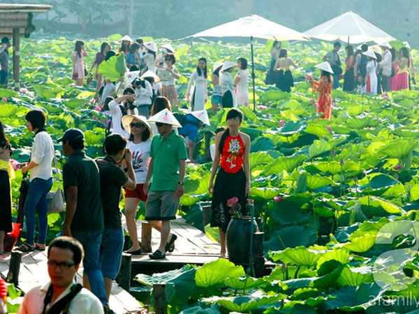 Tháng 6 đến, một mùa sen lại về trên nhiều tỉnh thành. Ở Hà Nội, khi sen nở rộ cũng là lúc chị em dập dìu hẹn nhau đi chụp ảnh cùng sen, nào thì yếm thắm, nào áo dài, váy vóc thật điệu đà, âu cũng chỉ là để người ta ghi lại những hình ảnh xuân sắc của mình. Vì phụ nữ mà, xét cho cùng, ai không muốn đẹp, ai không muốn có chút kỉ niệm để nhìn lại sau này?