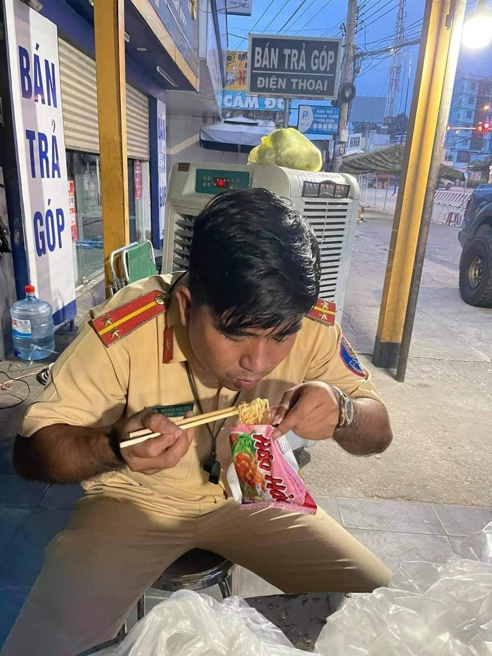 Mới đây, người dùng mạng chia sẻ khoảnh khắc chiến sĩ CSGT trực chốt ăn vội gói mì ngay bên đường. Cứ ngỡ hình ảnh này chỉ thấy ở mấy cô cậu sinh viên muộn giờ lên lớp mà nấu vội, cho đến khi thấy được hình ảnh cay mắt này.