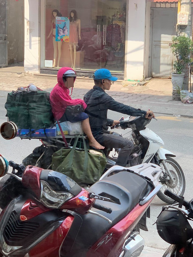 Có lẽ, cô bé được nghỉ ngày cuối tuần, nhà không có ai trông nên bố mang đi, đồng hành cùng công việc thường ngày. Em gái được trang bị đầy đủ áo chống nắng, mũ bảo hiểm và ngồi gọn phía sau xe. Hình ảnh đáng yêu của hai bố con khiến cư dân mạng xuýt xoa mãi.
