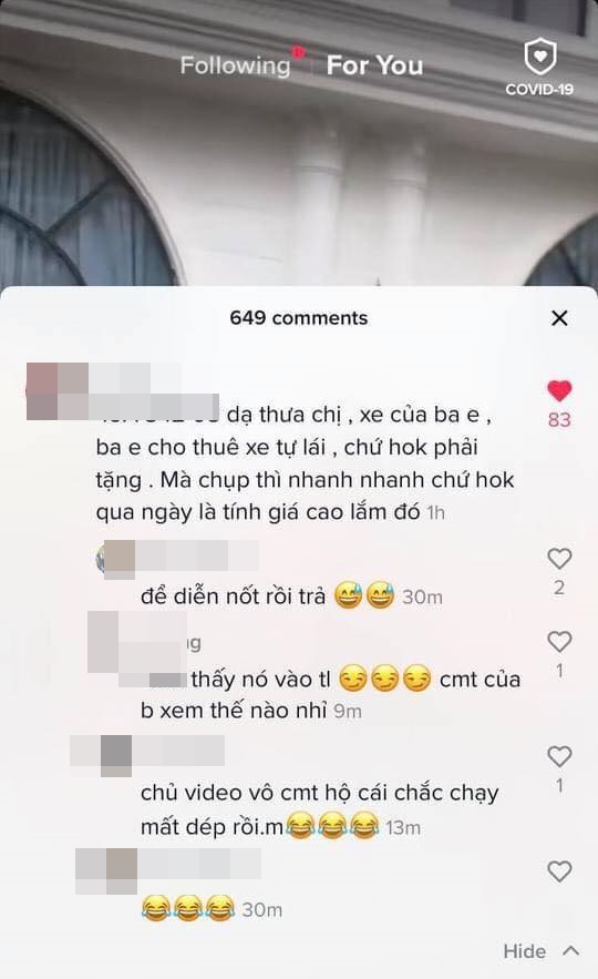 "Dạ thưa chị, xe của ba em, ba em cho thuê xe tự lái chứ không phải tặng. Mà chụp thì chụp nhanh nhanh chứ không qua ngày là tính giá cao lắm đó".