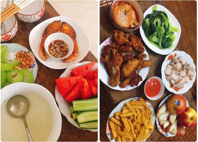 Những bữa ăn bình thường mình làm khoảng 3 món như món xào, món luộc, rau và hoa quả tráng miệng. Thường những bữa đó mình nấu trong khoảng 30 phút, vì còn phải đi học trên trường và dành thời gian đi học thêm nữa. Những ngày cuối tuần hay dịp nào đó mình sẽ dành nhiều thời gian để nấu nướng hơn”, 10X cho hay.