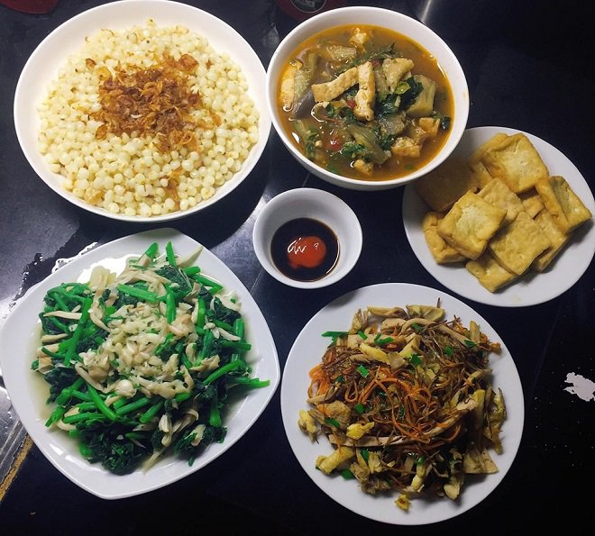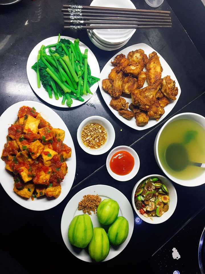 “Bọn mình dù ở 2 người nhưng vẫn nấu khá đều đặn và thường xuyên, trừ khi có những dịp cả 2 cùng đi học sẽ ra ngoài ăn bún đậu, bún chả, .. hoặc là 1 trong 2 không ăn cơm ở nhà thì sẽ ăn qua loa thôi.