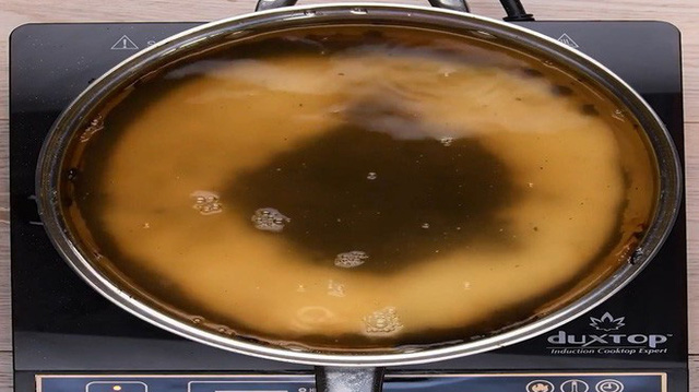 Sáng hôm sau, chỉ cần lắc nhẹ nồi hay chảo là sẽ thấy mọi mảng bám đen cháy được long ra sạch. Chảo, nồi trở lại sáng bóng như vừa mới mua.