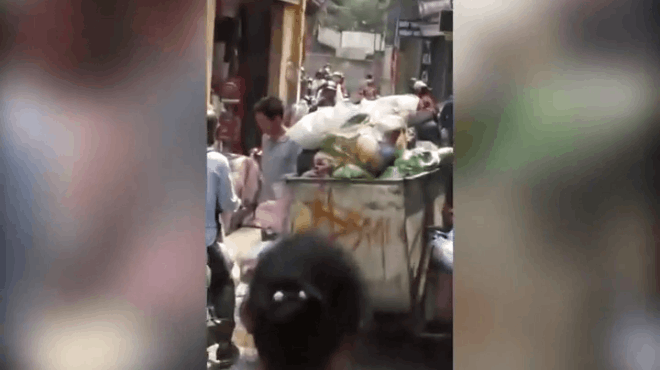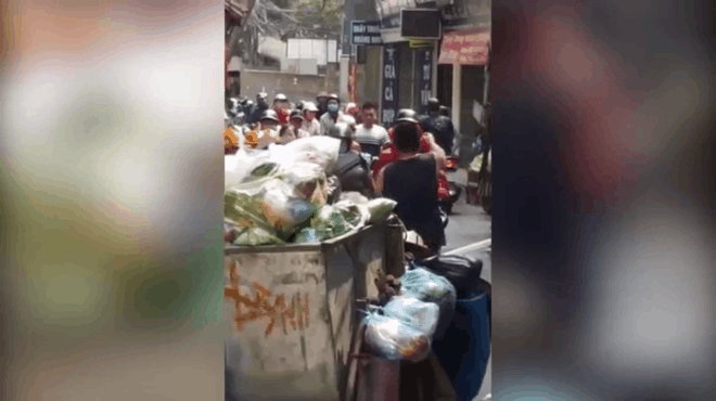Cô gái trẻ đi xe máy SH và nam công nhân chở xe rác đi ngược chiều, nhưng không nhường đường cho nhau. Cũng vì thế mà đoạn đường bị ùn tắc ở cả hai chiều.