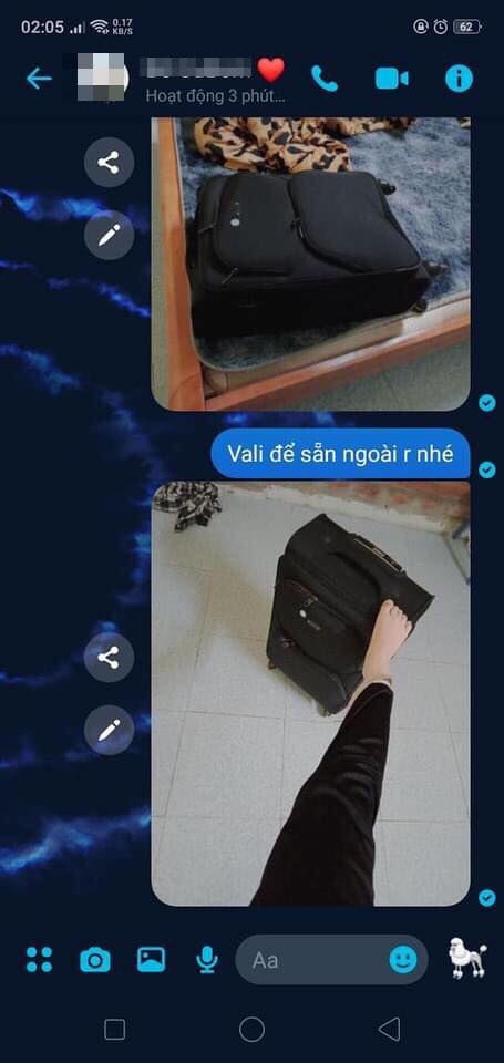 "Bắt thóp" chồng sợ bị ngủ ngoài đường, chị vợ nhắn tin chỉ dẫn 5 bước cuốn gói rời khỏi nhà. Với giọng điệu tỉnh bơ, chị vợ lần lượt nhắn: "Bước 1 mở tủ lấy vali, bước 2 mở va li, bước 3 mở tủ quần áo, bước 4 cho quần áo vào vali gọn gàng, bước 5 đóng tủ khóa va li".