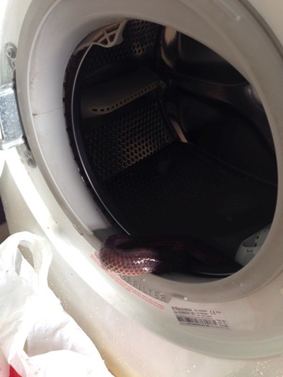 Làm gì khi phát hiện rắn trong máy giặt?