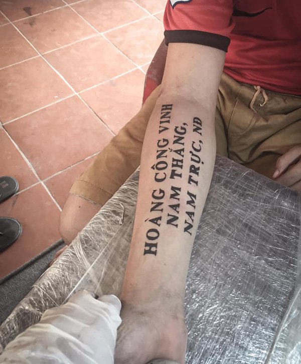 Sau đó, Đức Thanh tư vấn cho người đàn ông xăm hình nhỏ vẫn có thể nhìn thấy chữ và chỉ nên xăm một bên tay. Tuy vậy, người đàn ông vẫn kiên quyết xăm to, viết chữ in hoa ở cả hai cánh tay.