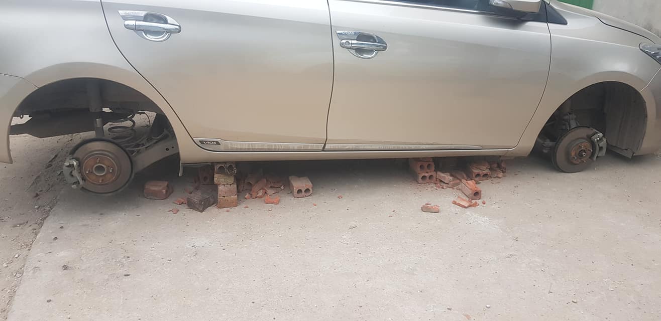 Hình ảnh chiếc xe này tội nghiệp không còn cái bánh nào để mà lăn này nhanh chóng thu hút quan tâm của cư dân mạng. Tháng củ mật đã đến rồi, mọi người nên cảnh giác hơn với tài sản của mình, tránh việc mất của rồi Tết đến lại mất vui.