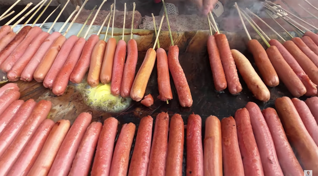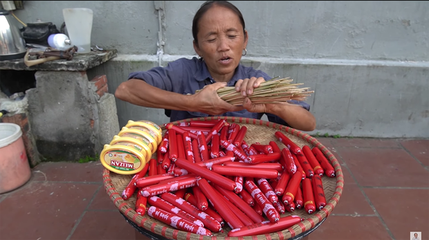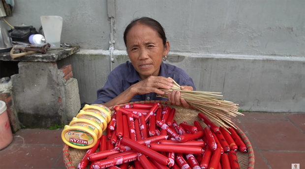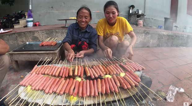 Thông thường, để nướng xúc xích, người ta sẽ dùng loại có vỏ dày rồi nướng chín là vừa nhưng bà Tân lại dùng xúc xích ăn liền - loại chỉ cần bóc vỏ và ăn luôn. Điều này cũng lý giải vì sao khi nướng, món xúc xích của bà Tân lại mềm oặt và dễ bị gãy như trong clip.
