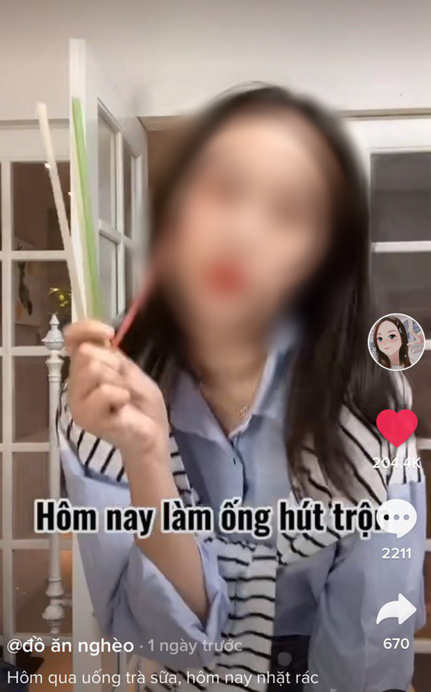 Nguyên liệu ống hút cô nàng lấy cũng vô cùng mất vệ sinh, đó là nhặt từ các ống trà sữa trong thùng rác.
