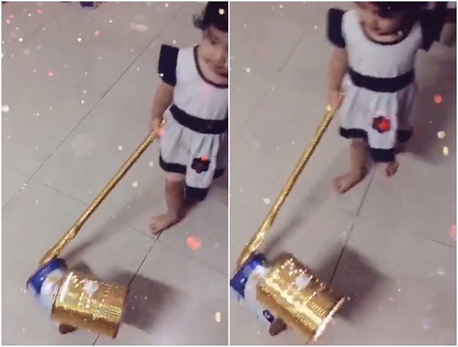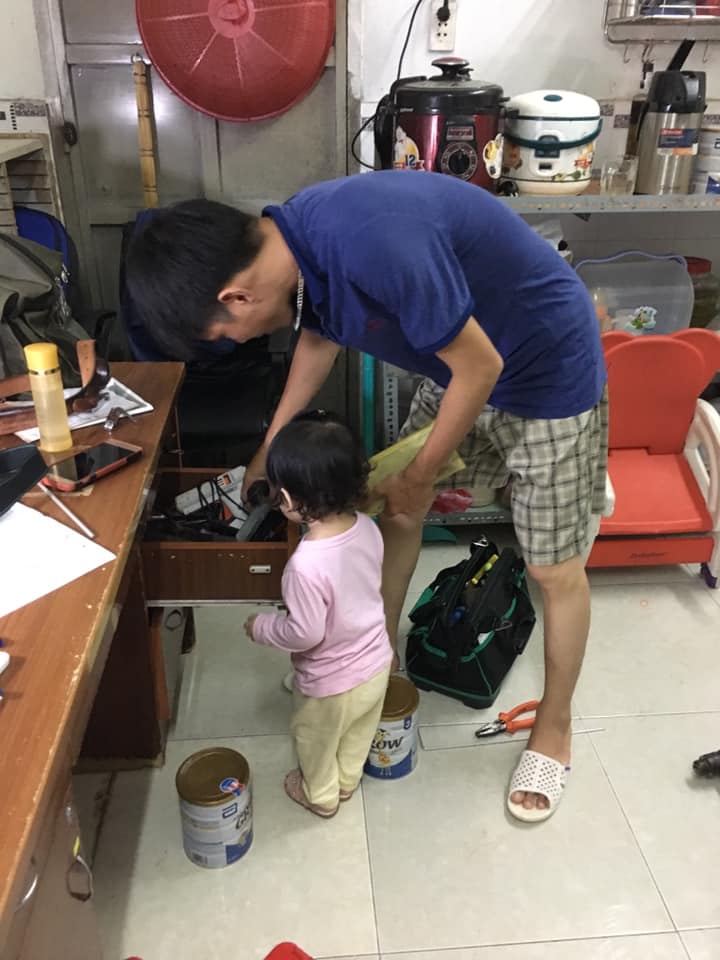 Đêm hôm trước hai bố con lọ mọ cắt cắt gọt gọt một loáng, sản phẩm cũng hoàn thành. Mít thích lắm. Hiện giờ con vẫn đang chơi vì nó cứ kêu leng keng, mình bỏ thêm loa nhỏ vào bên trong mở nhạc cho vui tai" - chị Hương Giang cho biết.