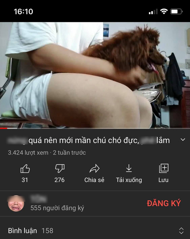 Cuộc đời tôi chưa bao giờ kêu gọi mọi người làm cái gì cả nhưng hôm nay, xin mọi người hãy giải cứu bé chó và hãy bắt cái thằng này vô trại tâm thần đi. Nghĩ sao nó quan hệ với một bé chó poodle, đăng tải clip đi vệ sinh trên YouTube không gỡ xuống? Kể lại quá trình "quay tay"? Vậy mà có nhiều người theo dõi và bình luận như không có gì xảy ra? Một con người quan hệ với một con chó mà bình thường hả? Cho nó vào trại tâm thần đi".