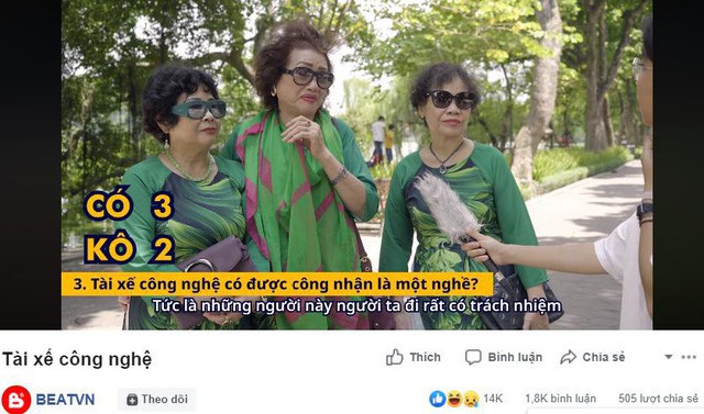 Trong clip, những người trung tuổi lại bày tỏ cái nhìn tích cực và trân trọng về nghề tài xế công nghệ hơn cả giới trẻ. Cô Mai Phương (57 tuổi, Hà Nội) cho rằng: "Ngồi văn phòng mát thật đấy! Nhưng ai cũng ngồi văn phòng, thì lấy đâu ra tài xế chạy xe ngoài đường. Tài xế công nghệ cũng là một nghề cho rất nhiều trải nghiệm, bác thấy không có gì thấp kém cả".