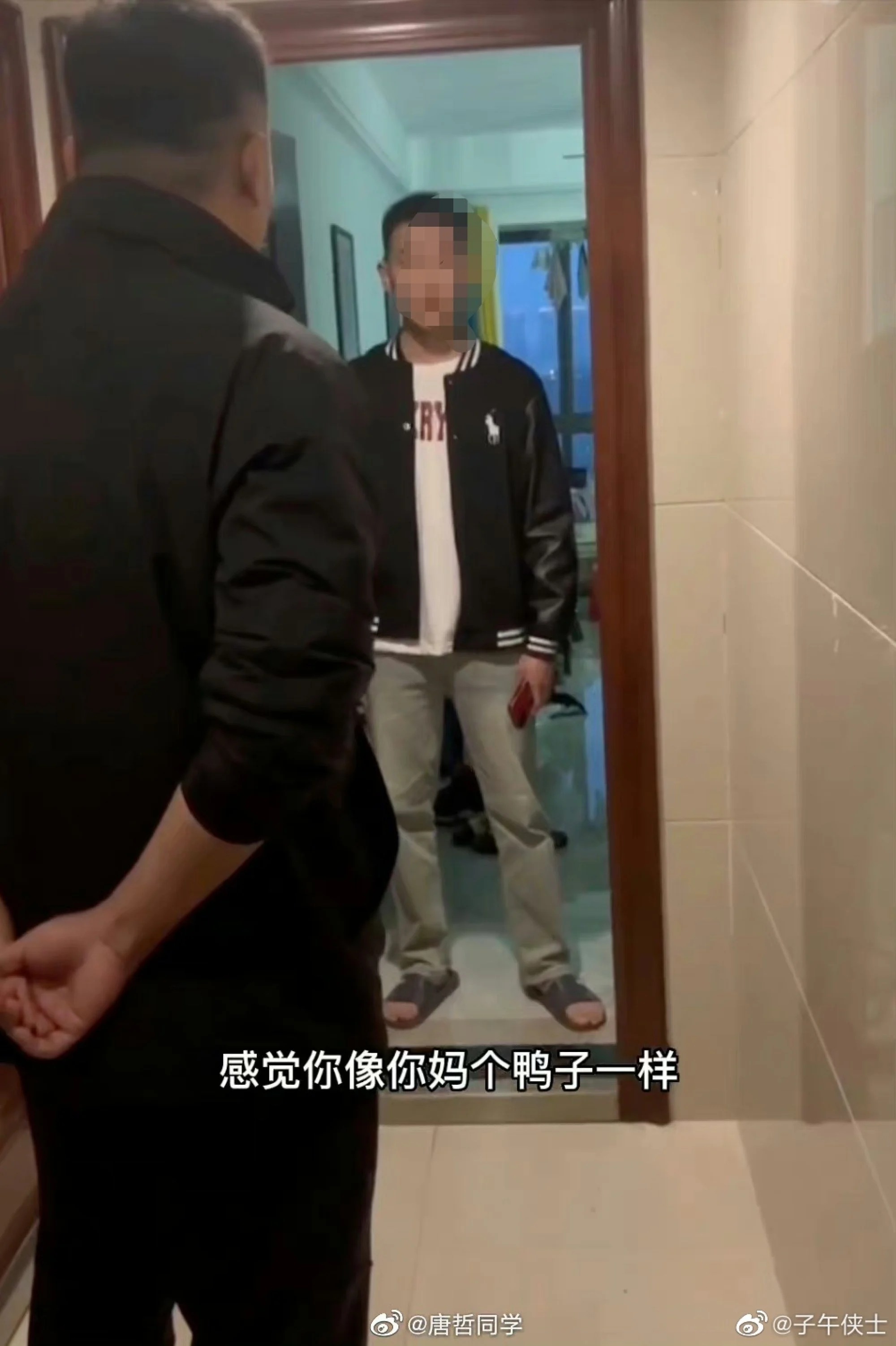 Vừa mở cửa, còn ngơ ngác chưa hiểu điều gì xảy ra, anh chàng đã nhận ngay một tràng khiển trách dài tới tận 2 phút từ phía anh chồng. Thậm chí còn có người đi theo sau quay clip lại.