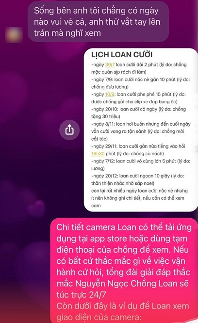 - Ngày 7/9 L. cười nắc nẻ gần 10 phút vì chồng đưa lương.