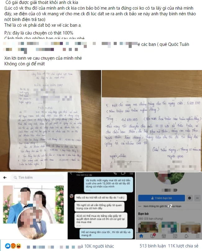Kèm theo đó là 1 loạt bằng chứng chứng minh câu chuyện trên là sự thật. Trong đó có cả "biên bản bàn giao" của cô vợ ghi rõ các khoản: