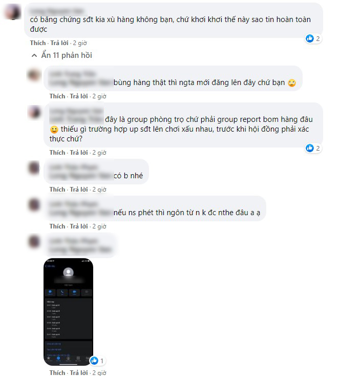 Khi có một dân mạng nghi ngờ rằng, thực chất bài đăng này không phải là để cầu cứu mọi người giúp đỡ mua đơn hàng bị bom, mà mục đích chính là để "khủng bố" số điện thoại cô gái cung cấp, thì T.L có đưa ra bằng chứng đã gọi vị khách kia đến "cháy máy" mà không nhận được hồi đáp.