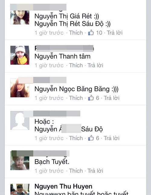 Đoạn bình luận siêu hài này sau đó đã được một số bà mẹ chụp lại và chia sẻ trên mạng, khiến người xem không thể nhịn cười với khả năng troll của các chị em. Còn cô gái tên L.Ly thì có lẽ đã không ngờ lại nhận được kết quả là những cái tên 'nghe muốn xỉu' như vậy.