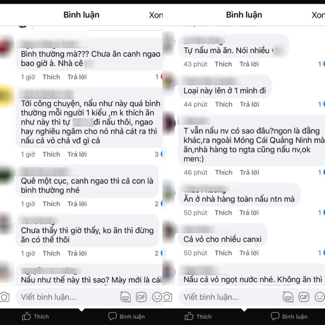- Nhìn mâm cơm ngon thế còn gì. Nấu canh ngao này mình thấy ở Quảng Yên - Quảng Ninh họ cũng để cả vỏ cho ngọt nước, đi ăn một số nhà hàng cũng như vậy, bình thường mà.