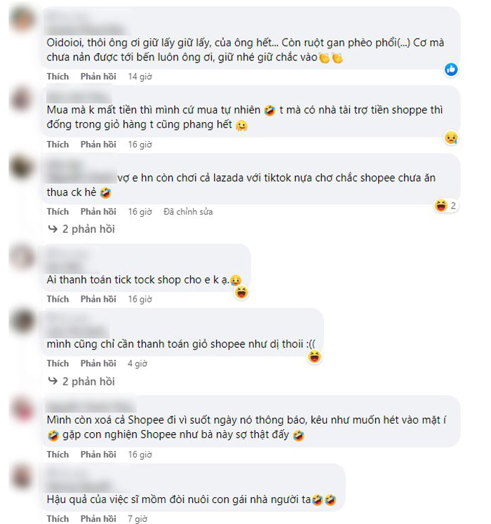 Mà mọi người biết không? Toàn mua mấy cái đồ lặt vặt kiểu gấu bông, móc chìa khóa, thi thoảng vẫn có đồ đắt như máy sấy, chuột, bàn phím, móc chìa khóa… Cứ chỉ thấy rẻ hơn thị trường 1 tí là múc, múc và múc, mà kiểu được mình trả nên cũng tự tin múc lắm, đi đâu giờ cũng lướt lướt xem có chương trình gì, mã gì không để mua. Người ta xem tiktok, facebook, instagram, người yêu mình xem sốp pi. Xong rồi cứ thấy bạn bè mua cái gì ở sốp pi ngon là xin link để mua…