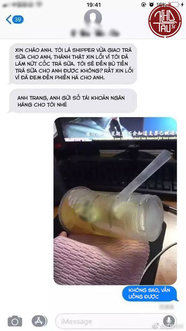 Câu chuyện viral từ Trung Quốc và đang được chia sẻ lại ở nhiều hội nhóm Facebook Việt Nam. Theo đó, anh shipper trong quá trình vận chuyển đã làm nứt cốc trà sữa của khách.