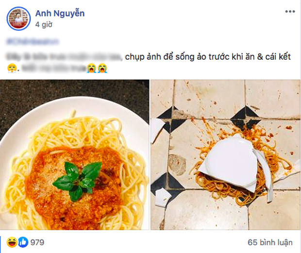 Tất nhiên, khó khăn lắm mới xuống bếp nấu được một món cầu kì, sao có thể không đăng facebook cho được. Ấy thế nhưng, anh chàng hậu đậu trong câu chuyện dưới đây đang sống ảo với đĩa mì spaghetti vừa làm thì..."toang". Anh chàng méo mặt vì mất ăn.
