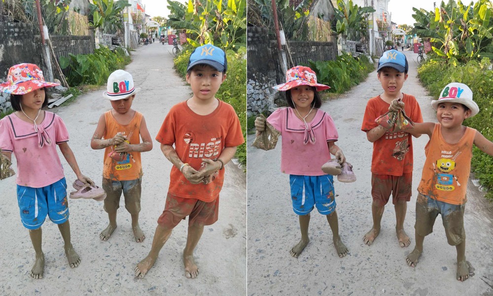 Chị Lê kể, "Quê ngoại đang vào mùa cấy, bà ngoại đi cấy thì các cháu đòi theo. 17h, trời nắng cháy da cháy thịt, lũ trẻ dẫn nhau ra đồng, lội thẳng xuống ruộng. Đứa đòi cấy, đứa đòi bắt cua, bắt ốc cho bà. Tôi đang cấy giúp mẹ, thấy cảnh đó mà bất lực". "Thành quả" cuối ngày của lũ trẻ là một túi bóng đầy ốc, nòng nọc, và thậm chí cả đỉa... khiến chị Lê "hoảng hồn".