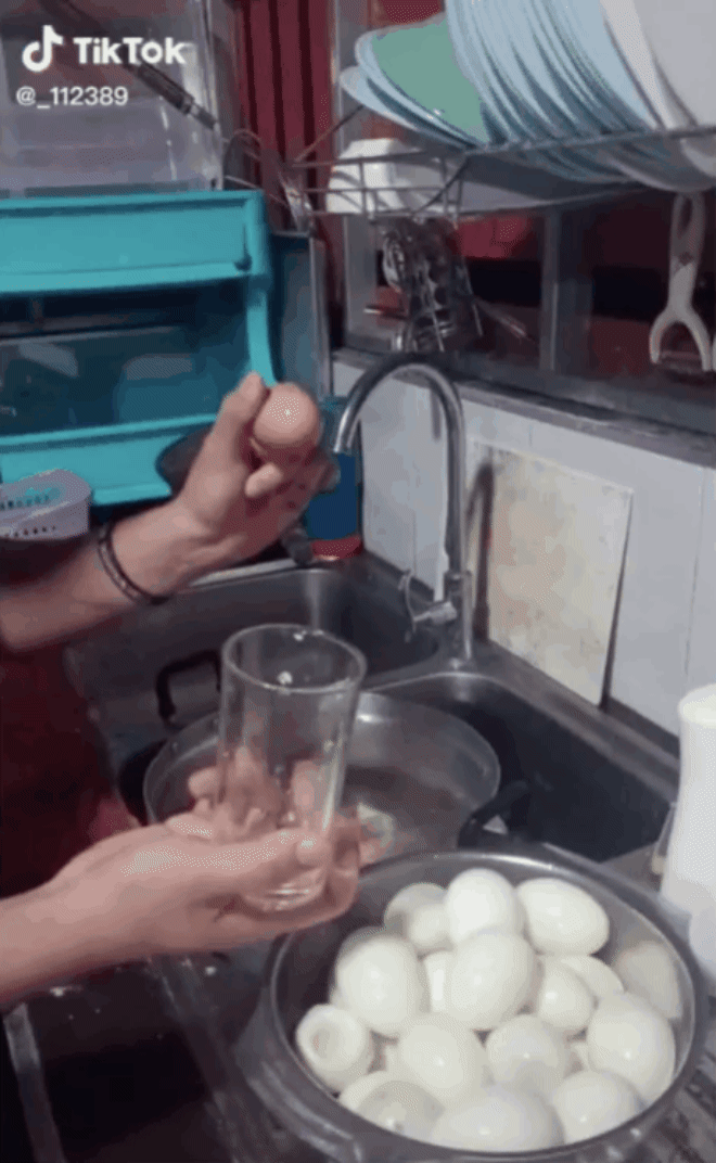Chỉ với 1 cái ly, cô gái này đã có thể lột vỏ trứng chỉ trong tích tắc.