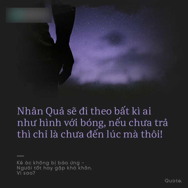 Vào những thời điểm mấu chốt, quan trọng, một suy nghĩ về thiện – ác có thể quyết định vạn mệnh trong tương lai của mỗi người. Con người sống một đời chứ không phải một chốc một lát, sự nhanh chóng trong chốc lát, sự được được mất nhất thời, tất cả chưa nói lên điều gì. Sự tử tế lương thiện của hôm nay sẽ là phúc báo của ngày mai. Sự ác độc của hôm nay sẽ là bi kịch của ngày mai. Thời gian là một nhà văn vĩ đại, nó sẽ viết ra những đáp án hoàn mỹ nhất.